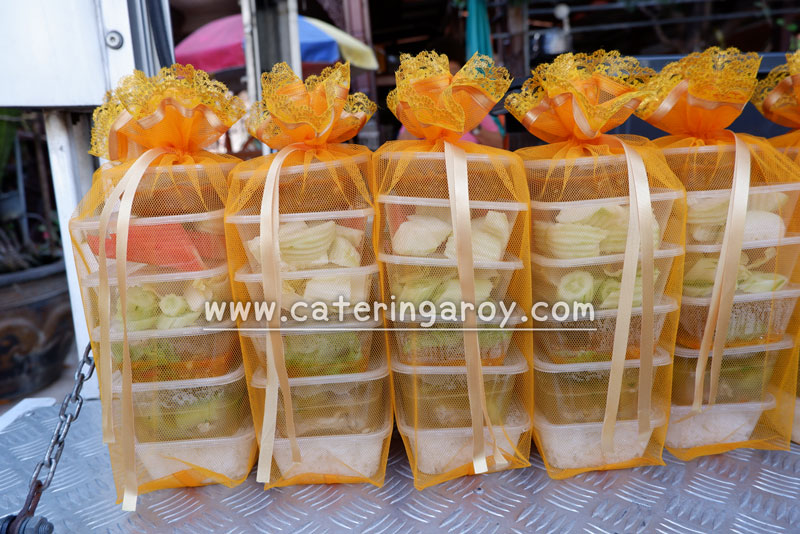ชุดอาหารทำบุญ แบบนี้ผมใส่อาหารลงในกล่องที่สามารถอุ่นไมโครเวฟได้ ในปริมาณที่พระท่านฉันอิ่มแน่นอน และใส่ถุงผ้าโปรงสวยงามแบบนี้เลยครับ